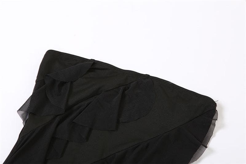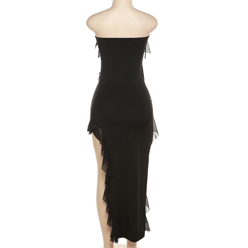 Be the first to review “Irregular backless solid ruffle slit tube midi dress”